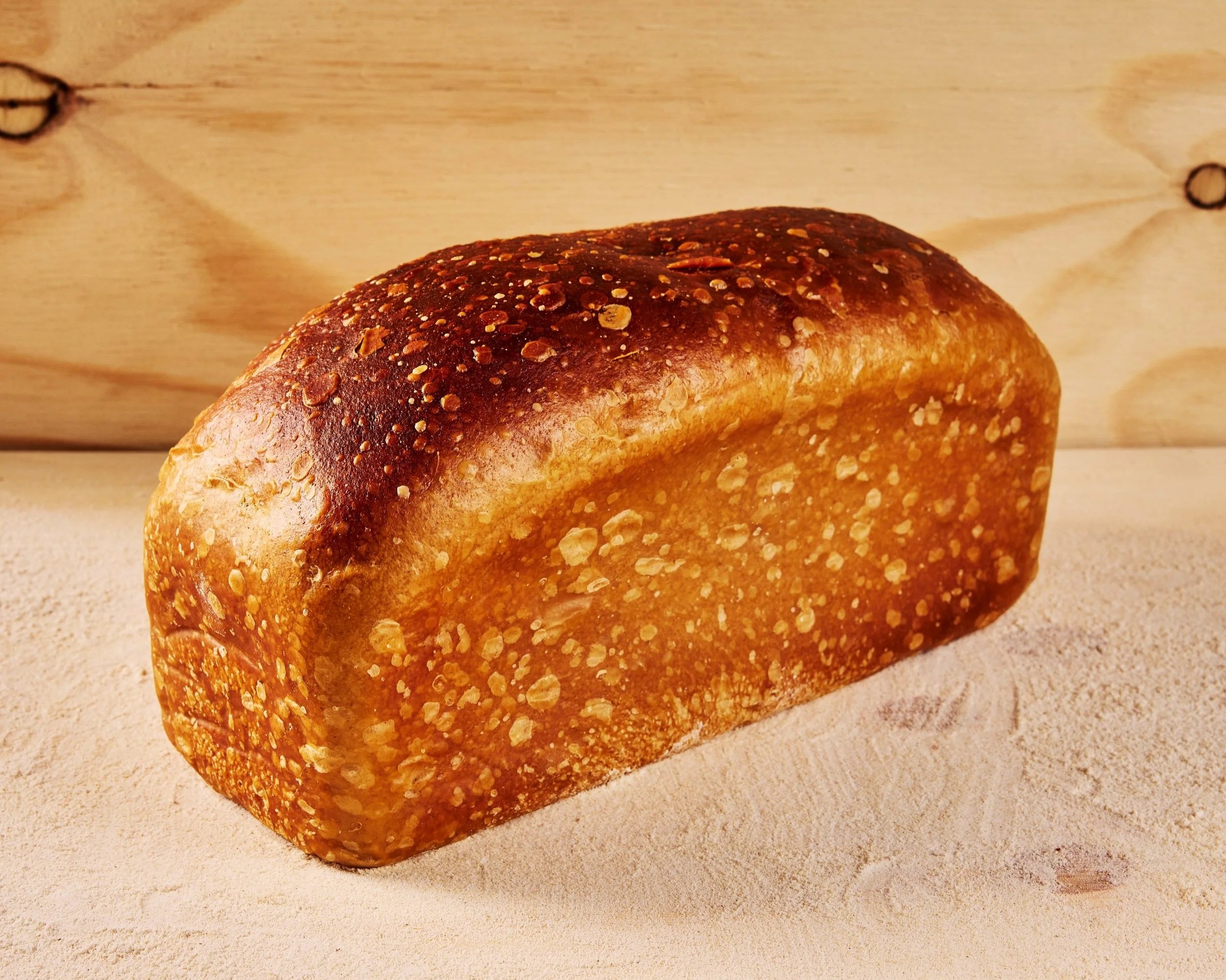 Our take on a sandwich loaf. True sourdough, long fermented, packing in as much heritage and wholegrain flours as possible while keeping a soft, even crumb. Enriched with milk and butter for extra softness and depth of flavour. A 1.1kg high top tin loaf.