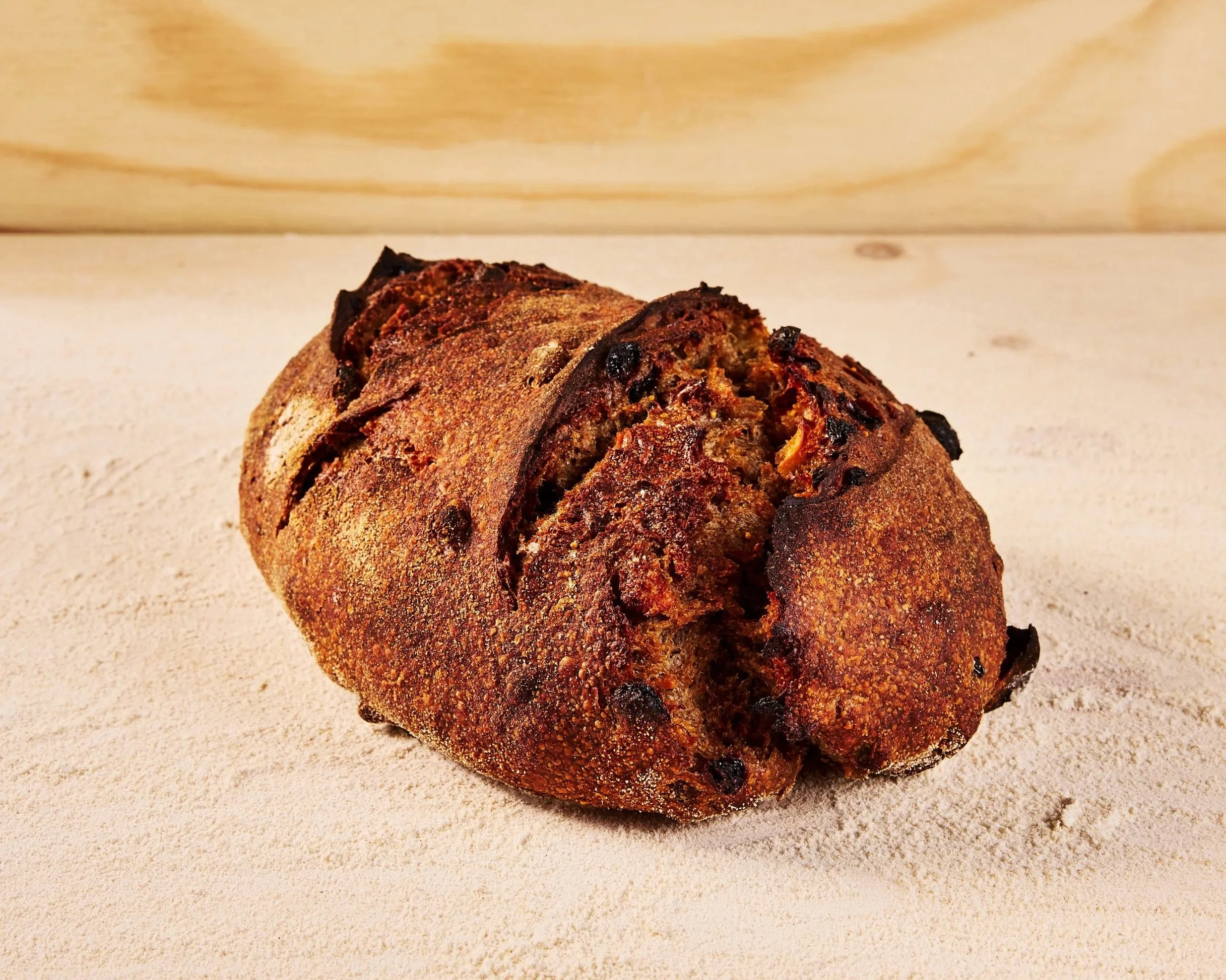 Our Sourdough Fruit Loaf is packed with sultanas, dates, cranberries, figs, apples, apricots, walnuts and spiced with a hint of true vanilla. We love this loaf and look forward to a toasted slice most mornings. An 800g freeform loaf.
